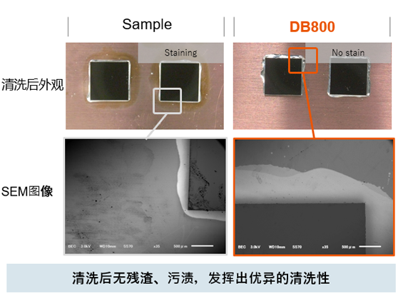 清洗液: 水系清洗剂浓度: 30wt% aq.液温: 50℃清洗方法: 超声波(480W, 38kHz)时间: 10min冲洗: 离子交换水冲洗方法: 超声波(480W, 38kHz)时间: 3min×2次干燥: 吹风后+50℃×5min